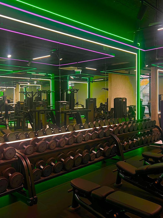 zonă de greutăți libere, zona de booty, zonă de functional training, zonă de stretching și mobilitate, zonă de powerlifting, zona de boxing, zona de cardio.
